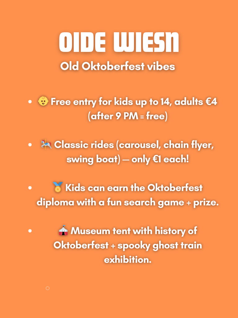 - Exploring Oide Wiesn (the “old Wiesn”) – more nostalgic, local, often quieter and charming.